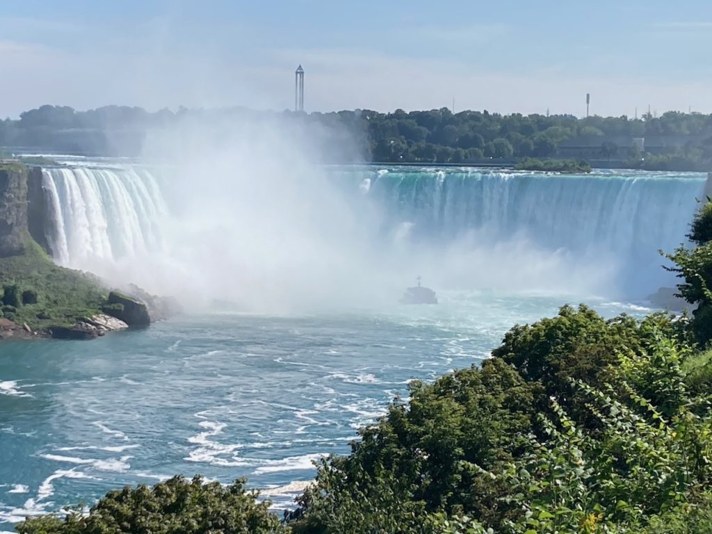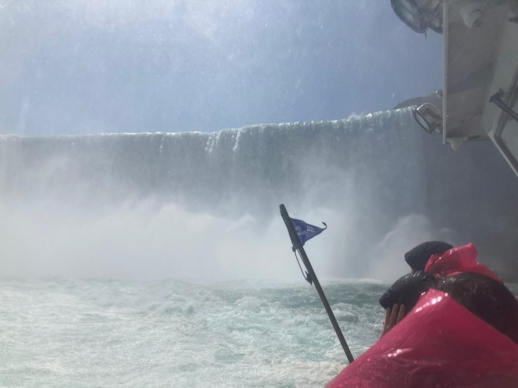 Traumhaftes Wetter erwartet uns, die Fälle sind auch voller Wasser (was angeblich nicht immer so ist) und wir stürzen uns auf eines der Boote um im Horseshoefall richtig nass zu werden.