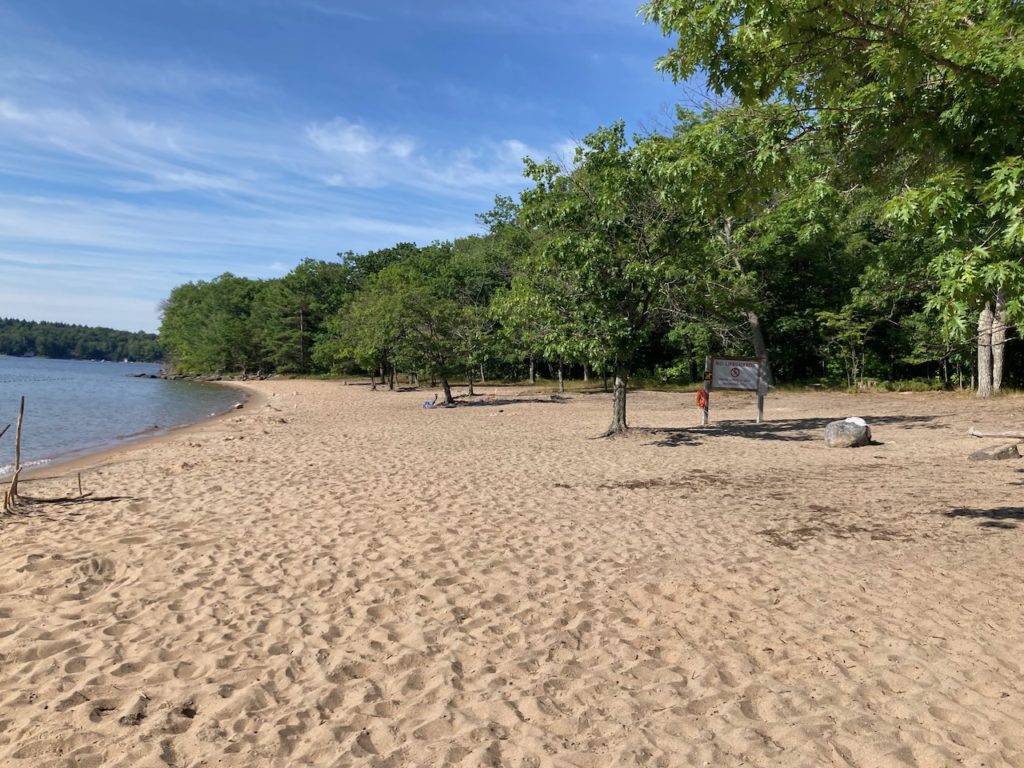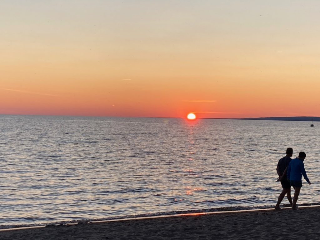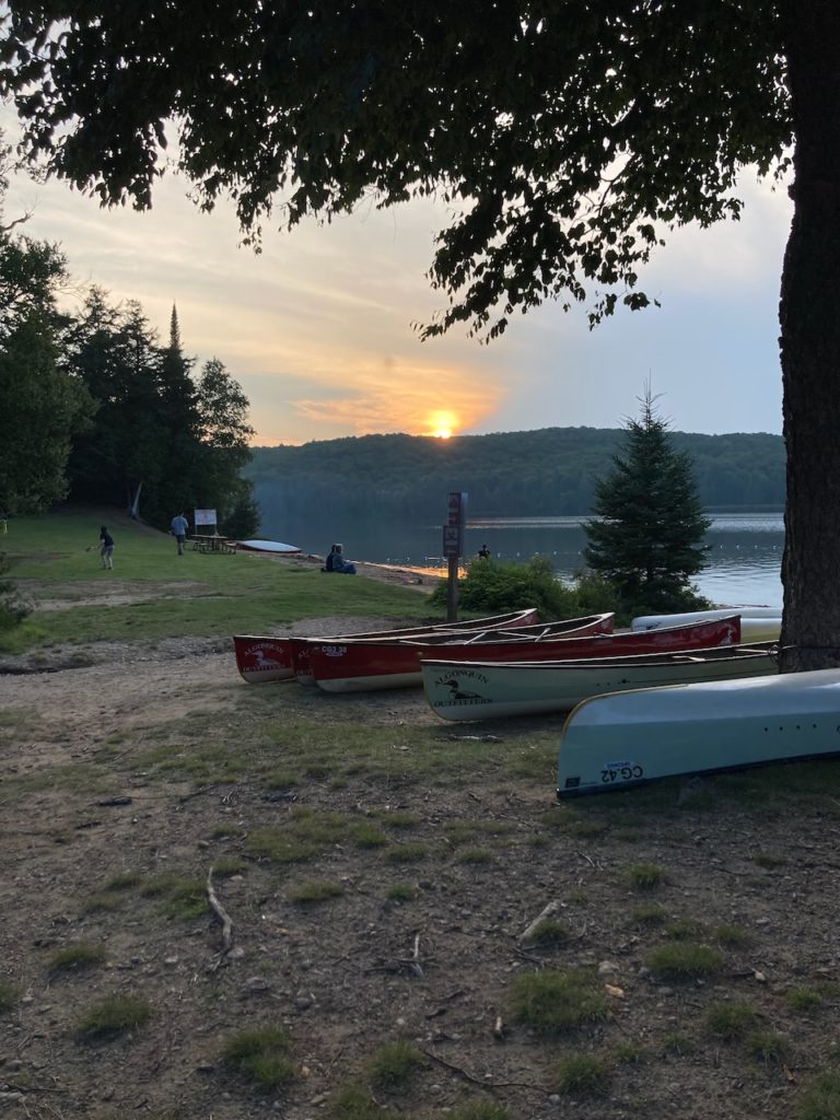Zum Abschluss wandern wir am Strand des Seeufers entlang und genießen den Sonnenuntergang und die warmen Temperaturen, denn das Wetter nimmt keine Rücksicht, dass wir in den Algonquin Provincial Park wollen und in Kürze soll es regnen.